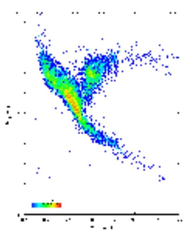 (Hertzsprung-Russell (M_Hp, V-I) diagram for the 41453 single stars from the Hipparcos Catalogue) ; Image credit: ESA