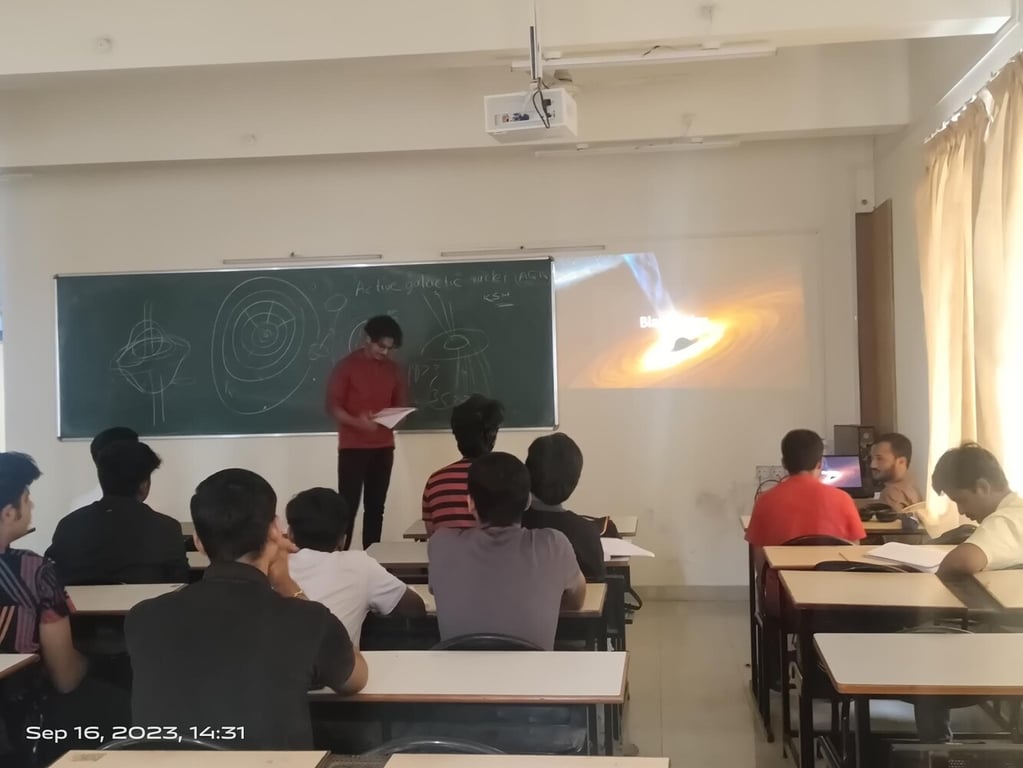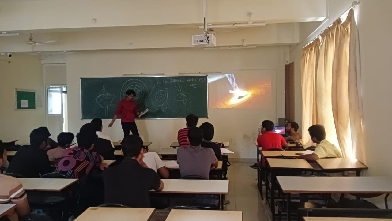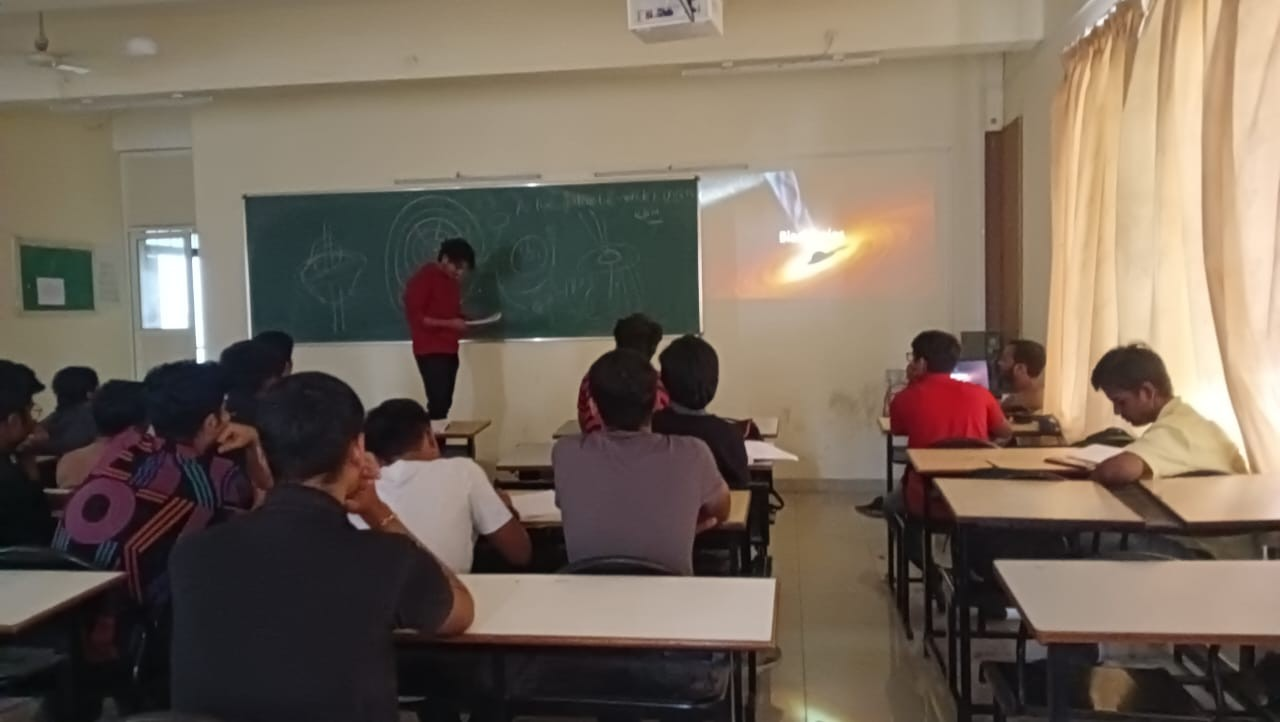 On the crisp evening of September 16, 2023, astronomy enthusiasts and curious minds gathered at the Vishwakarma Institute of Information Technology in Pune for an enlightening and captivating internal talk hosted by the Antariksh Club. HARSH JALNEKAR , a core member of the club, took center stage to unravel the mysteries of the universe, focusing on the fascinating topics of "Death of a Star and Introduction to Black Holes."