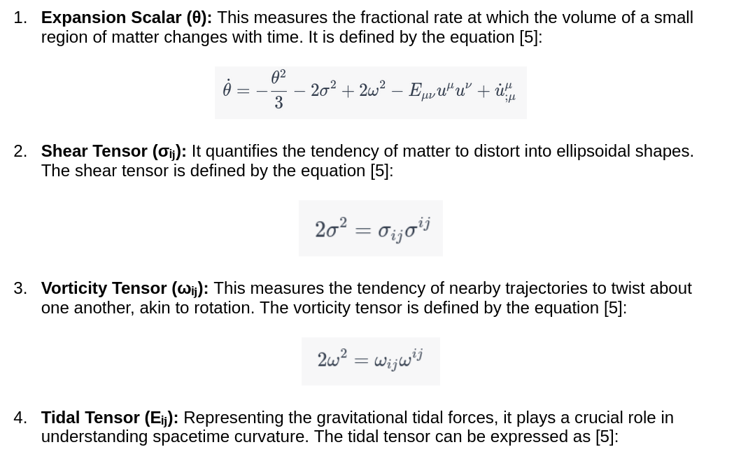 Expansion (θ): This term quantifies how the trajectories within the congruence diverge or converge.