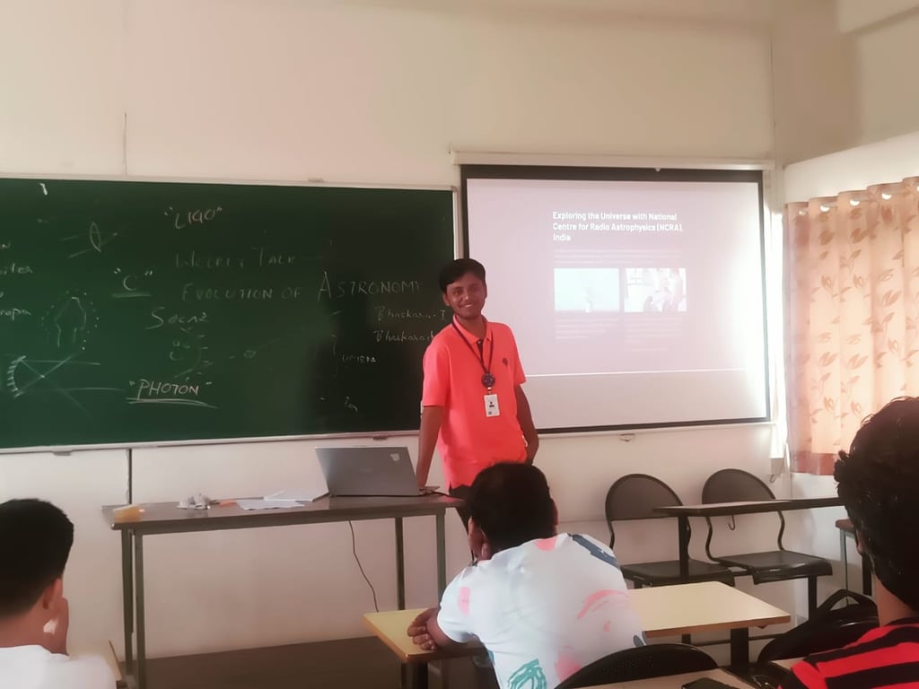 Embarking on Modern Cosmic Quests: From NCRA to LIGO and Beyond: We then steered toward the modern forefront of cosmic exploration, shedding light on the role of radio astronomy in deciphering the universe's mysteries. The National Centre for Radio Astrophysics(NCRA) emerged as a beacon of knowledge, seamlessly connecting modern astronomy to the electromagnetic spectrum. Attendees were granted a glimpse into the Antariksh Volunteers' visit to the Inter-University Centre for Astronomy and Astrophysics (IUCAA, Pune, India) and the Giant Metrewave Radio Telescope (GMRT), showcasing the tangible impact of modern technology on our cosmic pursuits.