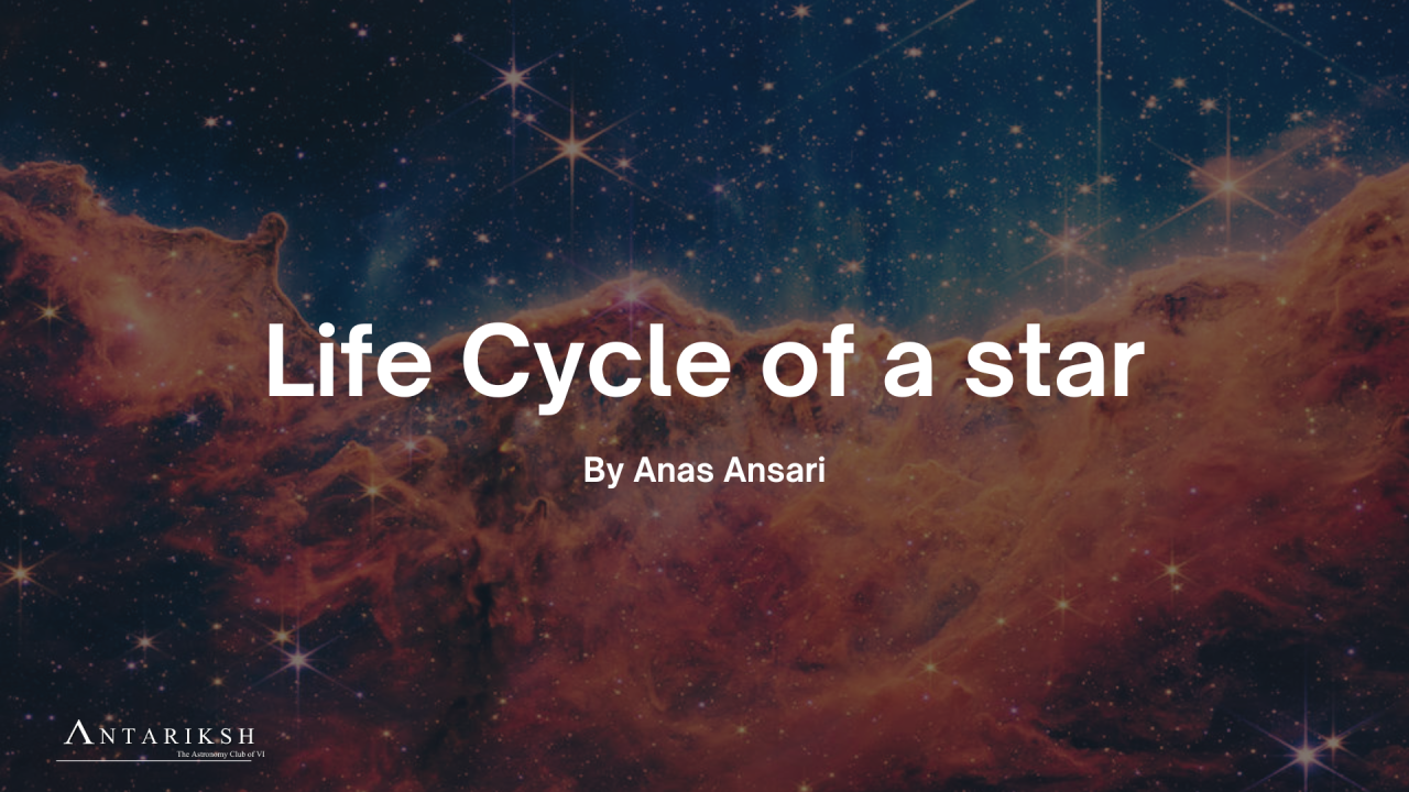 The Antariksh - Astronomy Club 's internal talk on the "Life Cycle of Stars" by Anas Ansari was a celestial odyssey that transported attendees across the cosmic tapestry, igniting their passion for the mysteries of the universe. The event not only showcased the club's dedication to fostering cosmic curiosity but also served as a testament to the limitless wonders that await exploration beyond our terrestrial realm.