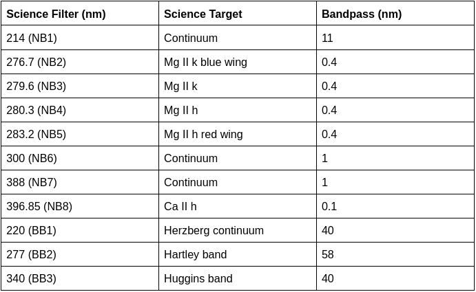 On November 20, 2023, the SUIT payload was powered ON. Following a successful pre-commissioning phase, the telescope captured its first light science images on December 6, 2023. These unprecedented images, taken using eleven different filters , include the first-ever full-disk representations of the Sun in wavelengths ranging from 200 to 400 nm, excluding Ca II h. The full disk images of the Sun in the Ca II h wavelength has been studied from other observatories.