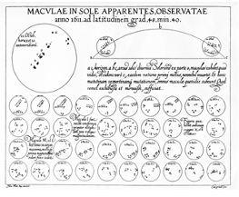 There is controversy behind the first observation of a sunspot. But the first historical record of the observation was found on 8th December 1910 in the notebook of Thomas Harriot. Later in 1611, a pamphlet was published named “On the Spots Observed in the Sun and their apparent rotation with the sun” by David and Johannes Fabricius. Galileo claimed to have discovered sunspots in the summer of 1610, but there is no proof that he did so until April of 1612. Regarding the disputes surrounding Galileo's life and what he discovered or did not discover before other scientists and/or observers, there are a lot of myths and misconceptions.